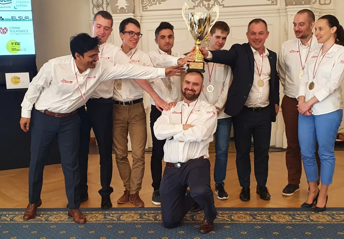 Mistrzowie Polski VOTUM SA Polonia Wrocław (od lewej): Pentala Harikrishna, Artur Czyż (kierownik), Mateusz Bartel (kapitan), Oskar Wieczorek, Marcin Tazbir, Szymon Gumularz, Bartłomiej Krupa (prezes VOTUM SA), Dimitrios Mastrovasilis, Jolanta Zawadzka. Na zdjęciu brakuje Nilsa Grandeliusa.