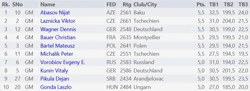 Zakończył się 7-rundowy turniej w Zurychy w którym startował Mateusz Bartel. Kapitan Polonii Wrocław ostatecznie zajął 5 miejsce, nie ponosząc żadnej porażki! Rozgrywane w dniach 26-30.12.2016 zawody w Szwajcarii zakończone! Rozstawiony z 3 numerem startowym, Mateusz Bartel z 5,5 pkt na 7 możliwych, podzielił miejsca 1-6. Niestety polonista nie miał najlepszej punktacji pomocniczej i zawody ukończył ostatecznie na 5 pozycji.