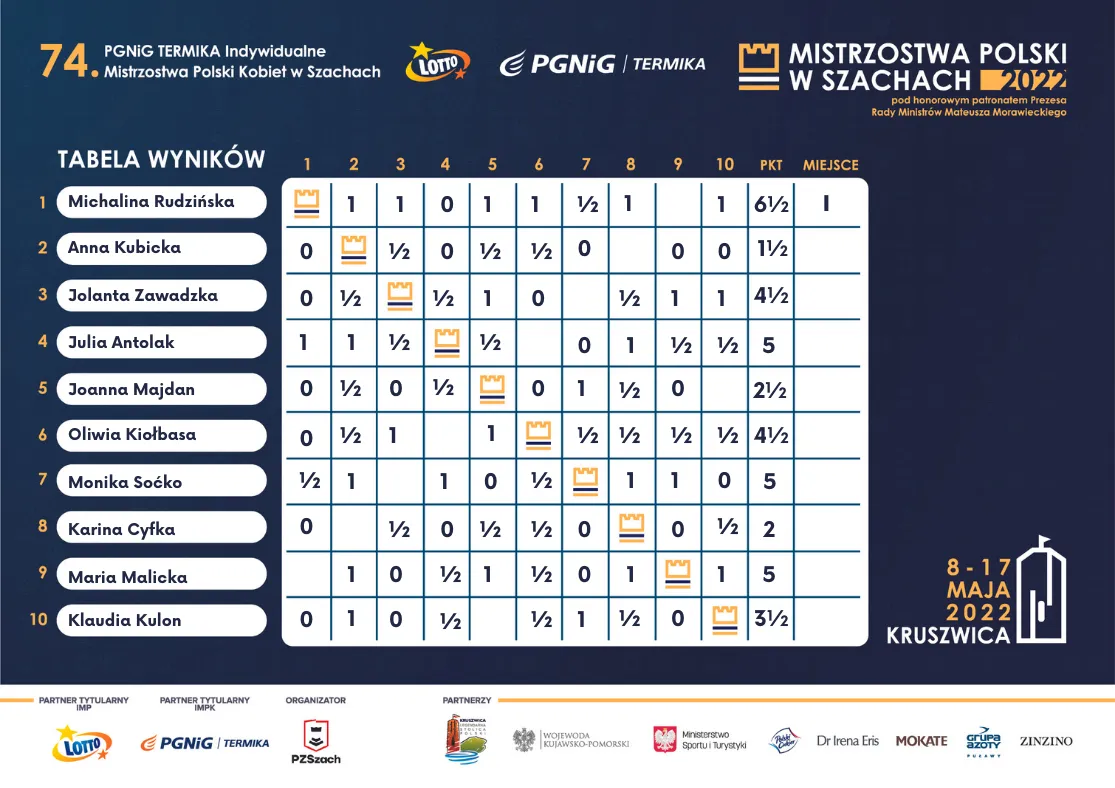Zakończyły się Indywidualne Mistrzostwa Polski Kobiet i Mężczyzn! Niestety nasi zawodnicy nie wywalczyli medali. W tym roku Indywidualne Mistrzostwa Polski Kobiet i Mężczyzn rozegrano w Kruszwicy (8-17.05.2022)! Wśród Pań reprezentowała nasz klub Jolanta Zawadzka. Wśród Panów zagrali Mateusz Bartel oraz Szymon Gumularz. 74. PGNiG TERMIKA Indywidualne Mistrzostwa Polski Kobiet W gronie 10 zawodniczek walczących o medale Mistrzostw Polski Kobiet nie mogło zabraknąć oczywiście naszej multimedalistki Jolanty Zawadzkiej. Polonistka w dotychczasowych startach - a było ich już 20, wywalczyła 14 medali (4 złote, 6 srebrnych, 4 brązowe). Niestety 21 finał Joli nie przyniósł jej zwiększenia stanu posiadania medali MP. Jola do ostatniej rundy walczyła o medal, ale jak się okazało, w tym roku wróci do Wrocławia bez żadnego krążka. Ostatecznie nasza zawodniczka zajęła 6. miejsce. Pełne wyniki - TUTAJ