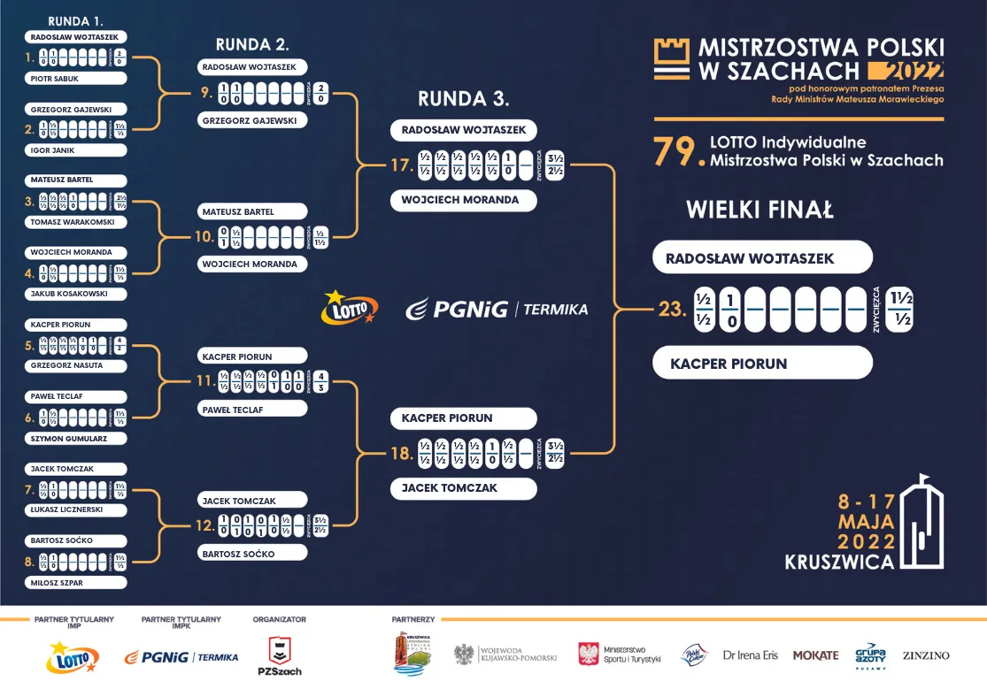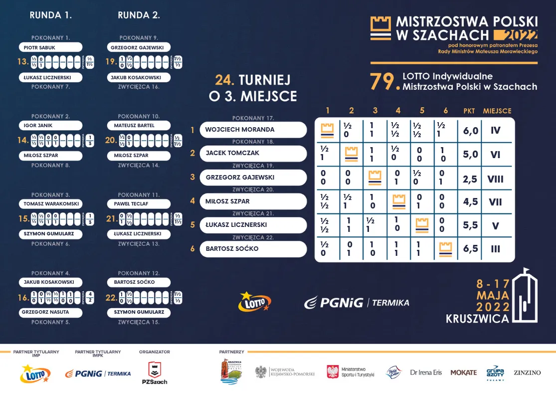 - W 2. rundzie Szymon zagrał z Bartoszem Soćko, który już okazała się lepszy od polonisty (porażka 0,5-1,5). Na tym samym etapie repasaży co Szymon, udział w MP zakończył Mateusz, który przegrał mecz z Miłoszem Szparem 0,5-1,5,