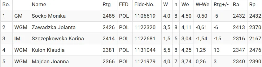 Wyniki indywidualne Polek: