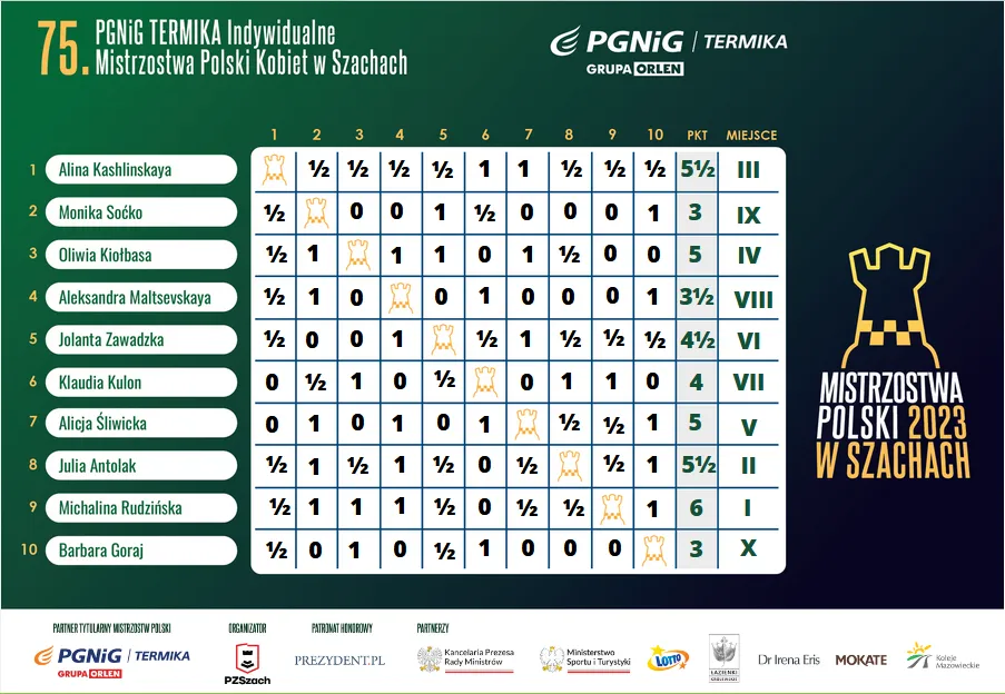 Zakończyły się Indywidualne Mistrzostwa Polski Kobiet i Mężczyzn! Warszawa w dniach 11-21.04.2023 była gospodarzem tegorocznych Mistrzostw Polski! W najważniejszym turnieju w Polsce zagrało czworo zawodników Polonii Wrocław. Wśród Pań zagrała Jolanta Zawadzka, a wśród Panów zagrali: Mateusz Bartel, Szymon Gumularz oraz Oskar Wieczorek. 75. PGNiG TERMIKA Indywidualne Mistrzostwa Polski Kobiet Tradycyjnie w gronie 10 finalistek tegorocznych mistrzostw znalazła się Jolanta Zawadzka. Dla Joli był to już 22 finał, a dorobek medalowy naszej zawodniczki wygląda imponująco (14 medali: 4 złote, 6 srebrnych, 4 brązowe). Niestety, ale polonistka nie powiększyła swojej kolekcji medali, kończąc mistrzostwa na 6. miejscu. Pełne wyniki - TUTAJ