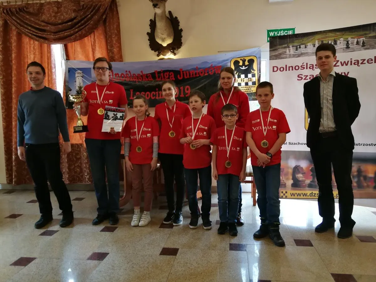 Zwycięzcy III Ligi Juniorów! Od lewej: Łukasz Butkiewicz (prezes DZSZach), Jakub Madajczak, Wiktoria Śmietańska, Wiktoria Janikowska, Błażej Grot, Paulina Cagara (trener), Marek Madej, Michał Demski, Michał Dzikowski (sędzia) Skład drużyny MDK Fabryczna Polonia Wrocław II