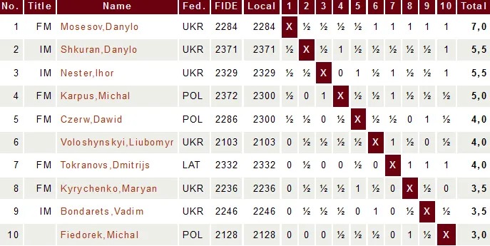 Serwis turniejowy - TUTAJ fot. Lviv Tradition - RR Title Tournaments GM,IM - WGM, WIM norms Lviv, Ukraine - facebook