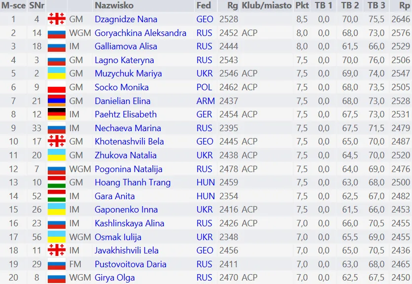 Tabela końcowa najlepszej "20"