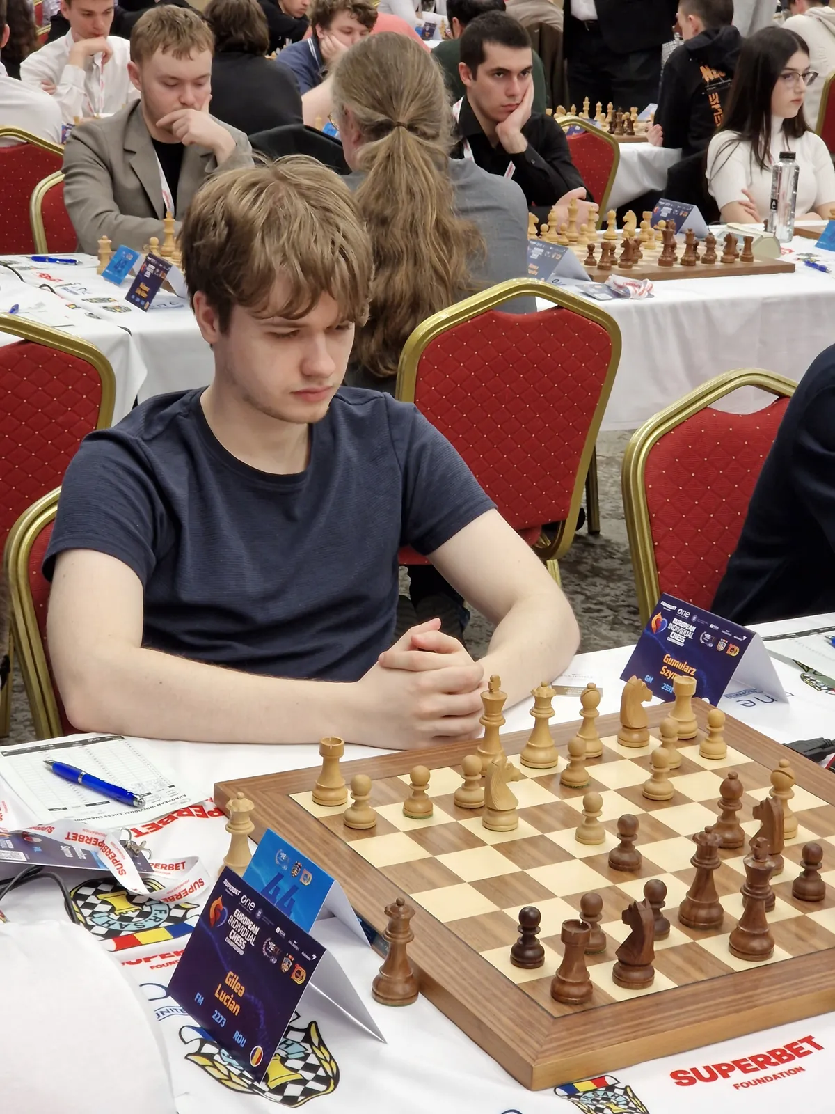 Kierownik, Michał Fudalej, prywatnie stojący za ChessboArt / Fot: https://www.facebook.com/FRSah.ro Patrząc na dotychczasowe osiągnięcia, każdy z naszych młodych zawodników i każda z zawodniczek, mieli w Rumunii inne cele. Jan Malek już od pewnego czasu spełnił wszelkie wymagania do otrzymania tytułu arcymistrza, jego ranking to 2500+ i choć oczywiście zdobywanie doświadczenia jest na pierwszych planie, to w jego przypadku marzenia o awansie można było snuć zupełnie realnie. Ba! Po 9 rundach, podobnie jak w zeszłym roku Szymon, Janek "w awansie" był. Niestety, stało się dokładnie to, co było udziałem Szymka na poprzednich ME: Malek przegrał dwa ostatnie starcia. Podobnie jak starszy kolega w ubiegłym roku, nie przegrywał z "ogórami", ale taka wypuszczona szansa na kolejną szachową przygodę ma prawo boleć. W 10 rundzie Janek został zaskoczony przez gwiazdę ostatniego Pucharu Świata, Nidżata Abasowa. Przypomnijmy, że Azer na IME grał na luzie, bo za miejsce w półfinale (!) poprzedniego PŚ miejsce ma z automatu. W partii z naszym młodzieńcem, Abasow odpalił niezłą ideę, którę - kto wie? - mógł mieć upichconą na Turniej Pretendentów. W końcu nie tak dawno, bo rok temu (!) w tym najbardziej prestiżwoym z turniejów były zawodnik Gwiazdy Bydgoszcz grał! Żeby niefortunnych wydarzeń było mało, Malek w ostatniej partii trafił na Gumularza. Czy można sobie wyobrazić gorsze kojarzenie? Z perspektywy klubowego kibica na pewno nie! Janek był świetnie przygotowany, przez dłuższy czas wydawało się, że to on bedzie partii nadawał ton, ale doświadczenie wzięło górę - Szyon przetrwał ciężkie chwile, sparował atak i przechwycił inicjatywę, a później punkt. Co to dało? Szymonowi nic, a Janek mógł tylko ze smutkiem spoglądać na tabelę, która czarno na białym pokazywała - gdyby Malek zwyciężył, wszedłby do PŚ. Na szczęście, Janek należy do osób obdarzonych - tak mi się wydaje - świetnym charakterem. Jestem pewien, że w przyszłości doświadczenie, nawet jeśli bolesne, zaprocentuje. Malek, poza pierwszymi dwoma partiami, gdzie miał dwoje dużo słabszych rywali oraz jedną rundą po środku turnieju, cały czas mierzył się z graczami dużo wyżej notowanymi. 8 partii z arcymistrzami poziomu 2580-2640 to świetny materiał do przemyśleń!