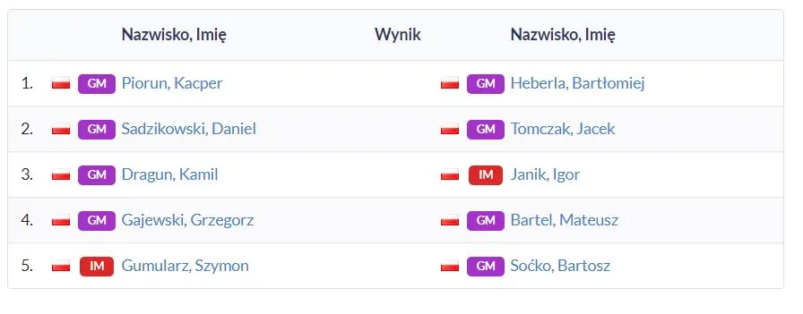 Rozegrana została 5. runda Mistrzostw Polski, co oznacza, że mamy za sobą już ponad połowę turnieju! Przed nami cztery decydujące rundy.