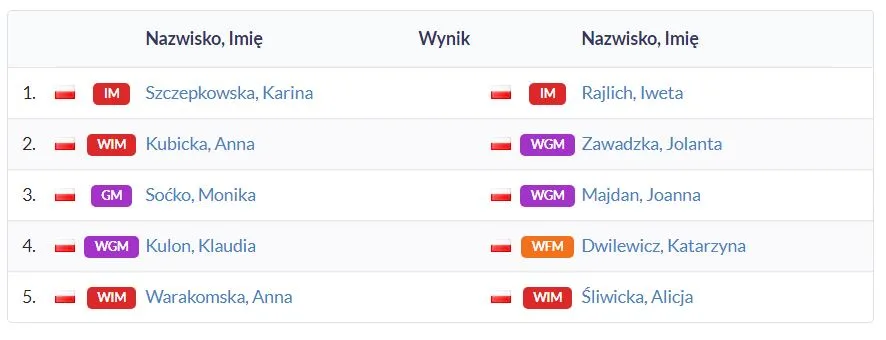 Kojarzenia 6. rundy u Pań: