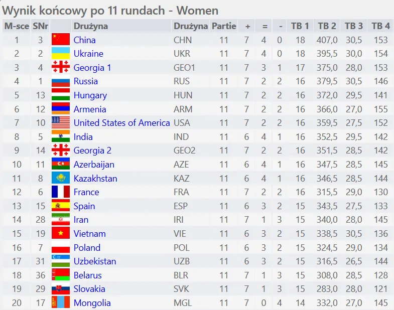 Niestety nasz Panie zremisowały w ostatniej rundzie z Hiszpankami i nie udało się tym samym skończyć Olimpiady w pierwszej "10"