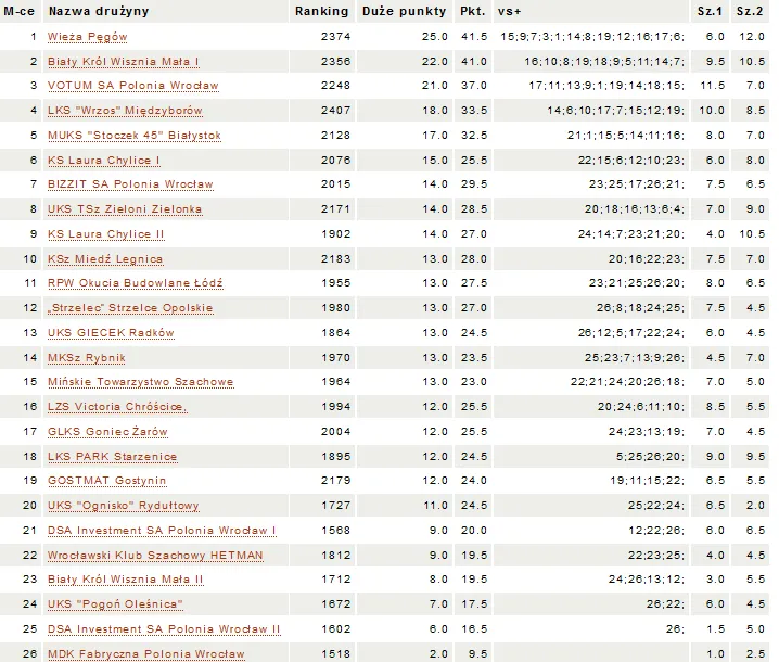 Tabela końcowa (turniej OPEN):