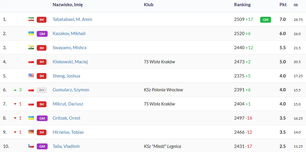 Wyniki – TUTAJ Wynik indywidualny Szymona - TUTAJ Partie – TUTAJ