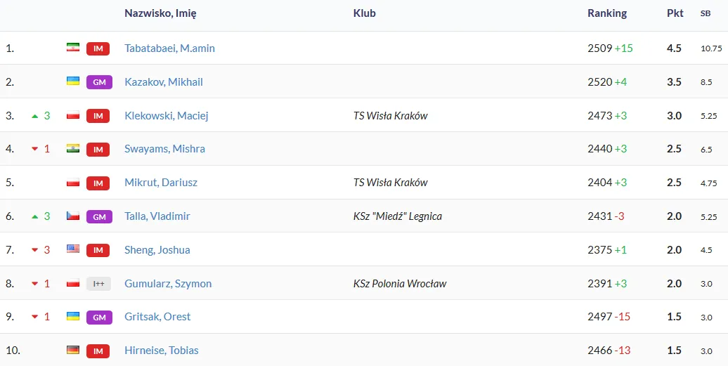 Tabela po 5 rundach: