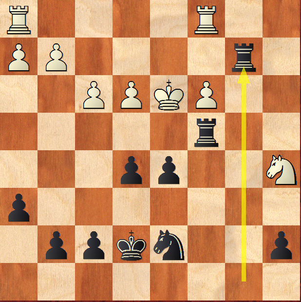 Z pomocą przyszła Karolina! Po rozgromieniu przeciwniczki w grze środkowej zrealizowała przewagę figury przy nietypowym rozkładzie materiału (dwie wieże za hetmana).