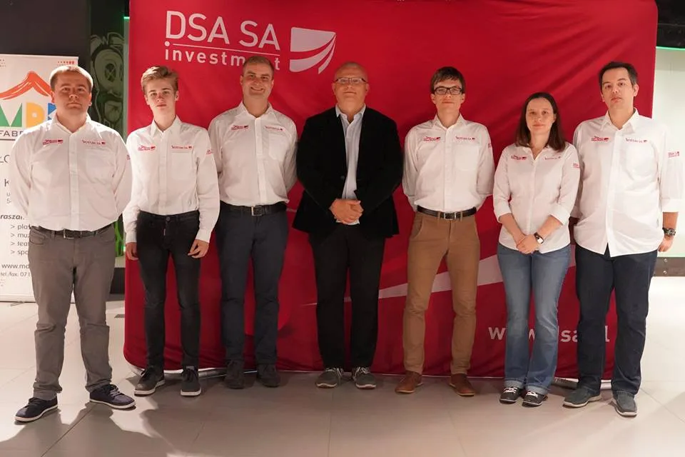 Skład VOTUM SA Polonii Wrocław podczas II Zjazdu Ekstraligi - Wrocław, 14-16.09.2018, (od lewej): Kamil Stachowiak, Szymon Gumularz, Marcin Tazbir, Andrzej Dadełło (prezes Polonii Wrocław), Mateusz Bartel, Jolanta Zawadzka, Dimitrios Mastrovasilis, fot. Wojciech Zawadzki