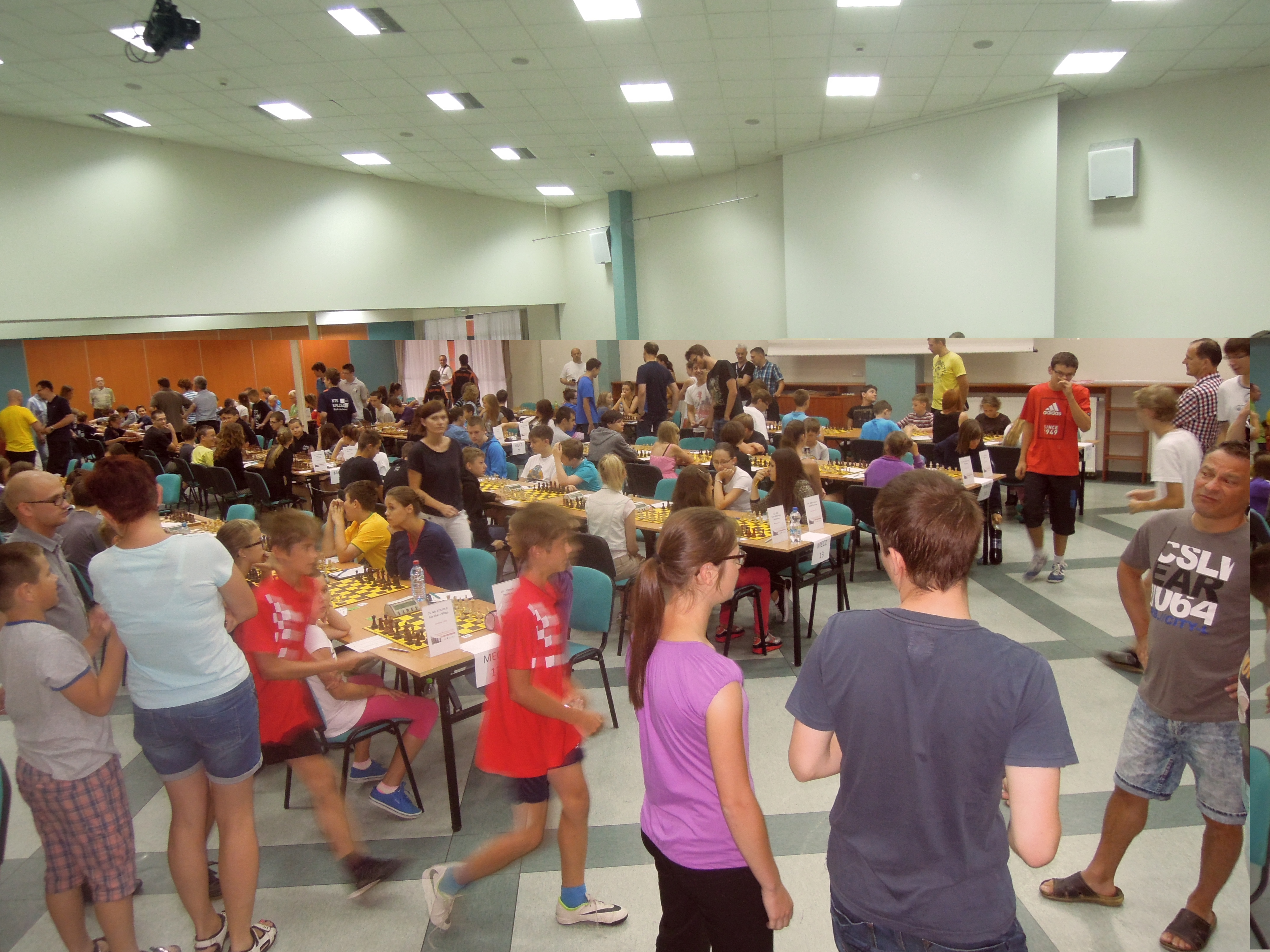 Rozpoczęło się bardzo dobrze od wygranej Szymona z niżej notowanym Łukaszem Ruttar. Także Jakub Dołharz w debiucie zdobył figurę, i tą przewagę „dowiózł” już do końca partii. Było 2-0, a na szachownicy figurę więcej miała także Patrycja. Niestety pozostali zawodnicy stali już dużo gorzej. Zanosiło się na 3-3. Agata musiała uznać wyższość swojej przeciwniczki, która mimo niedokładnej ofierze w debiucie sprawiła problemy polonistce, która nie potrafiła sobie z nimi poradzić. Także Łukasz grając mało aktywnie doprowadził do bardzo złej pozycji. Niespodziewanie swoją pozycję, dzięki aktywności, wybronił Kamil Nowak, który dostał nawet lepszą pozycję i zremisował swoją partię. Mogliśmy liczyć na wygraną 3,5. Przy realizacji figury u Patrycji. O tym, ze w szachy gra się do samego końca świadczy to co stało się dalej. Niestety Polonistka przestraszyła się gróźb swojej przeciwniczki i zamiast grać aktywnie zaczęła cofać się figurami do tyłu ostatecznie przegrywając swoją partię. Trzeba przyznać, ze mieliśmy ponownie dużo szczęścia gdyż bogini Caissa uśmiechnęła się do Łukasza, który wygrał swoją partię. Wszystko skończyło się dla nas szczęśliwie.
