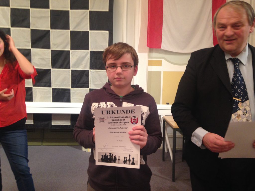 Turniej w Berlinie rozgrywany był na dystansie 7 rund. Zwyciężył arcymistrz Sergey Kasparov z Białorusi, który zdobył 6 pkt. Nasz Michał Fiedorek zajął wysokie 11. miejsce (w stawce 100 zawodników). Szachista Polonii zgromadził 5 punktów, na które złożyły się 3 zwycięstwa i 4 remisy.
