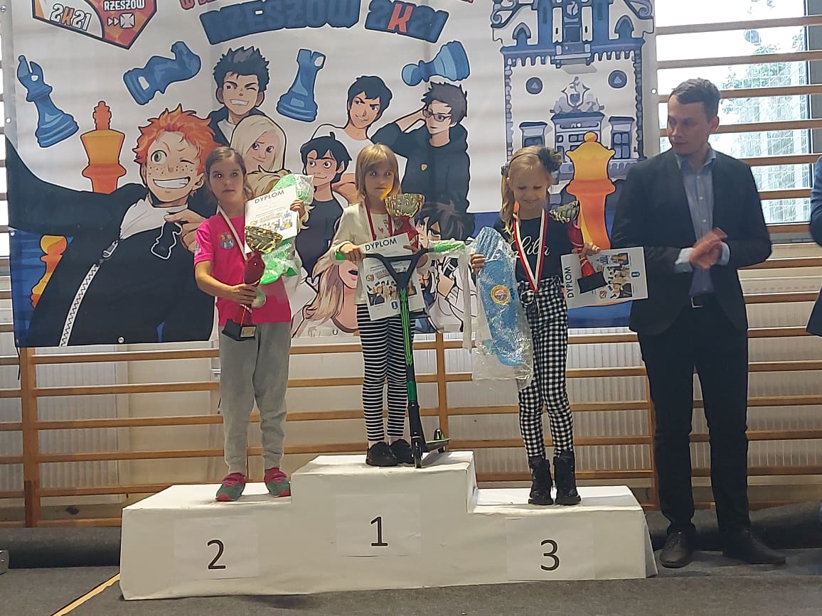 Po Mistrzostwach Polski Juniorów w Szachach Szybkich i Błyskawicznych do lat 14, 16 i 18 przyszła pora na zawodników do lat 8, 10 i 12, którzy przez ostatnie dwa dni rywalizowali w Szachach Szybkich. W mistrzostwach zagrało 17 naszych zawodników i z tego grona mamy 3 medalistów 🙂 Złoty medal wywalczyli Wiktoria Śmietańska (dziewczęta do lat 12) oraz Mateusz Różański (chłopcy do lat 10). Brązowy medal zdobyła Rządkowska Lila (dziewczęta do lat 8). Gratulacje Wiktoria, Mateusz i Lila! Zawodnicy Polonii Wrocław zdobyli jeszcze dwa miejsce w pierwszej „10” – Wieczorek Maja (dziewczęta do lat 12) – 9. miejsce, Filip Ochędzan (chłopcy do lat 10) – 10. miejsce.